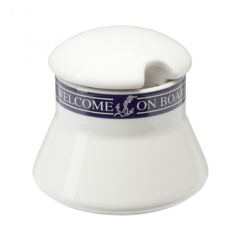 Suikerpot met de tekst ”Welcome on Board”. Gemaakt van porselein. Levering is per stuk.