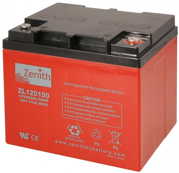 Zenith AGM 40 Ampère accu voor de transportwagens en de hoogwerkers. Uiteraard zijn er ook nog ontelbare andere toepassingen die een Deep Cycle AGM accu met hoge kwaliteit nodig hebben. Hiervoor is Zenith AGM Deep Cycle uitermate geschikt. Bekijk hieronder de specificaties van de 40Ah Deep Cycle accu.