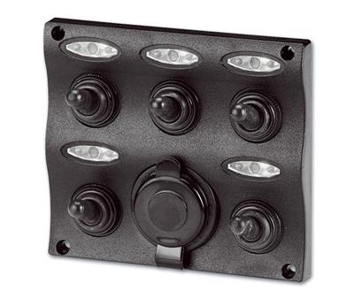 Deze Eastern Schakelpaneel Led 12V Wave is gemaakt van hard ABS met verstevigde hoeken. Op het paneel bevinden zich 5 waterdichte schakelaars (20A) die zijn voorzien van een 15A zekering. Daarnaast heeft dit paneel ook nog een 12V sigarettenaanstekercontact. Doormiddel van een rode led kunt u zien of de schakelaars zijn ingeschakeld. Wordt standaard geleverd met afdichting.