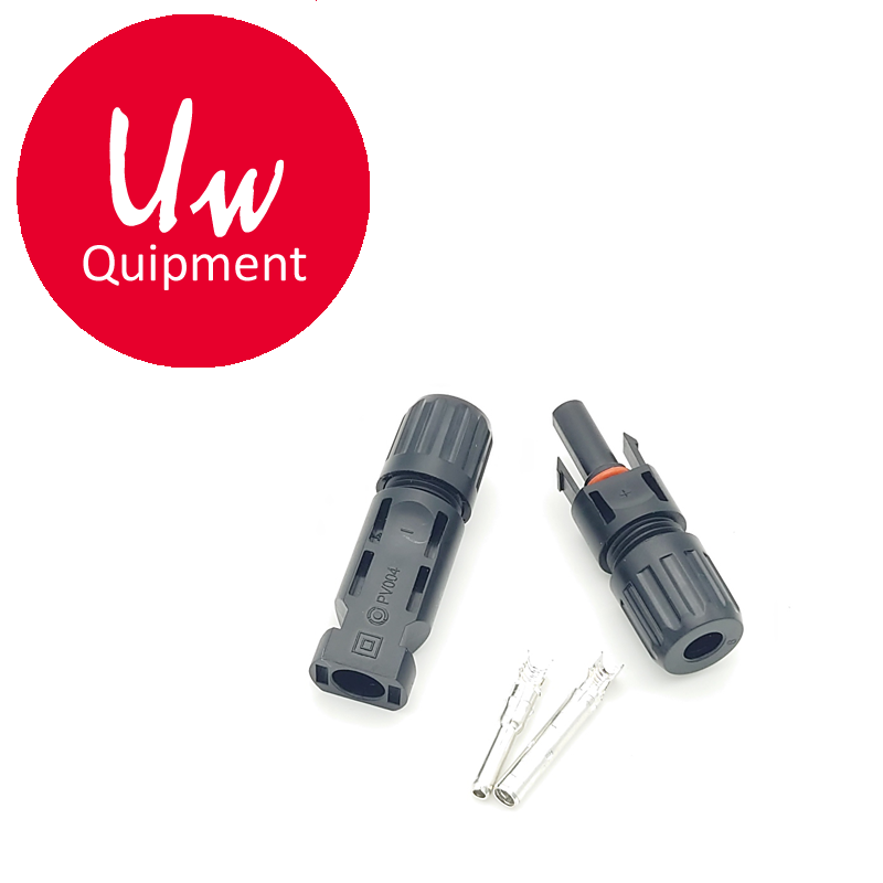 Solarconnector pair MC4 uit de Uw Quipment serie. 1x Male + 1x Female MC4 stekker inclusief de bijbehorende montagehulzen.