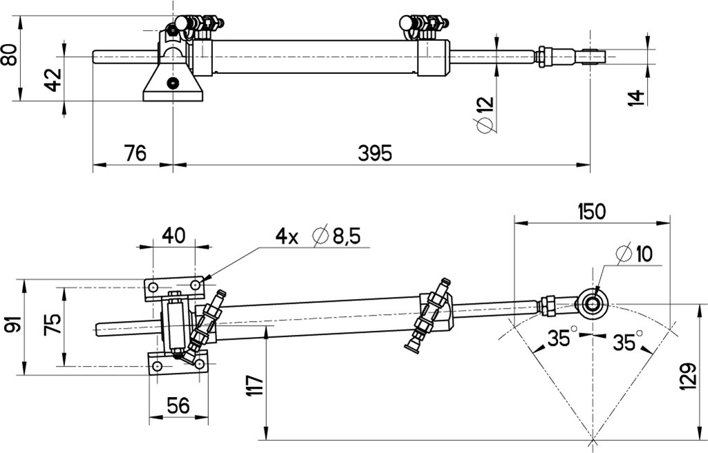 Hoge kwaliteit messing cilinder voor grotere jachten en werkboten. Wordt geleverd met verzinkte stangkop en knelfittingen met ontluchtingsnippels.
