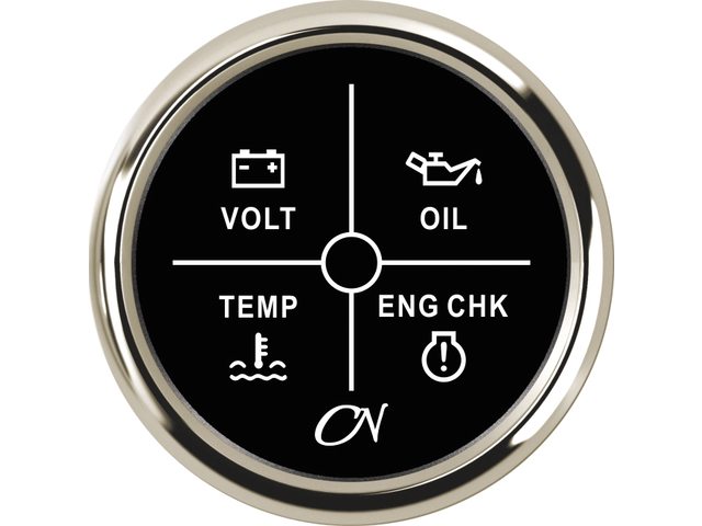 CN 4-LED alarminstrument klok Zwart rand chroom