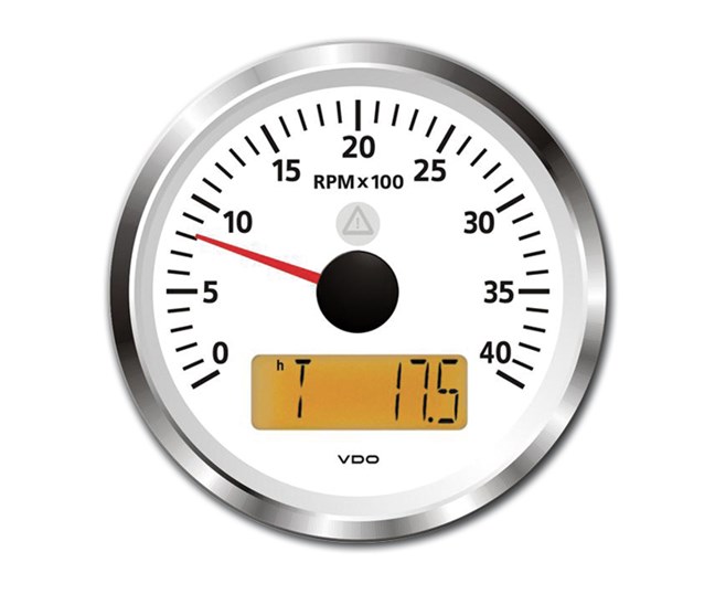 Witte of Zwarte behuizing. De VDO Toerenurenteller heeft een bereik van 0 tot 4000 toeren. VDO toeren-urenteller