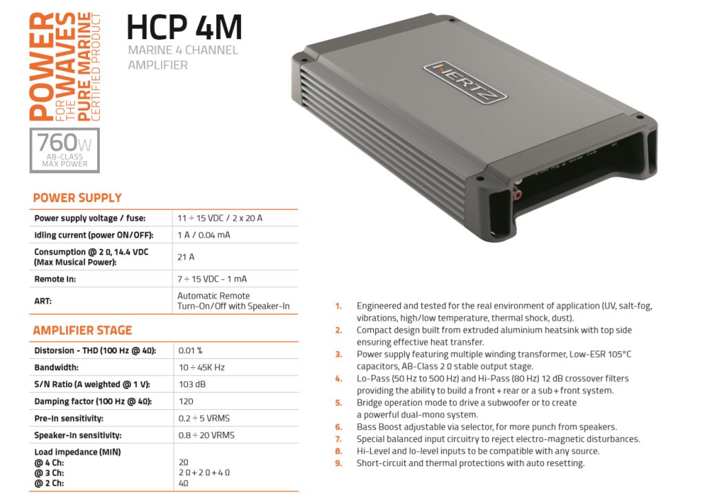 Hertz HCP 4M Marine Stereo 4 kanaals Versterker 4x95W