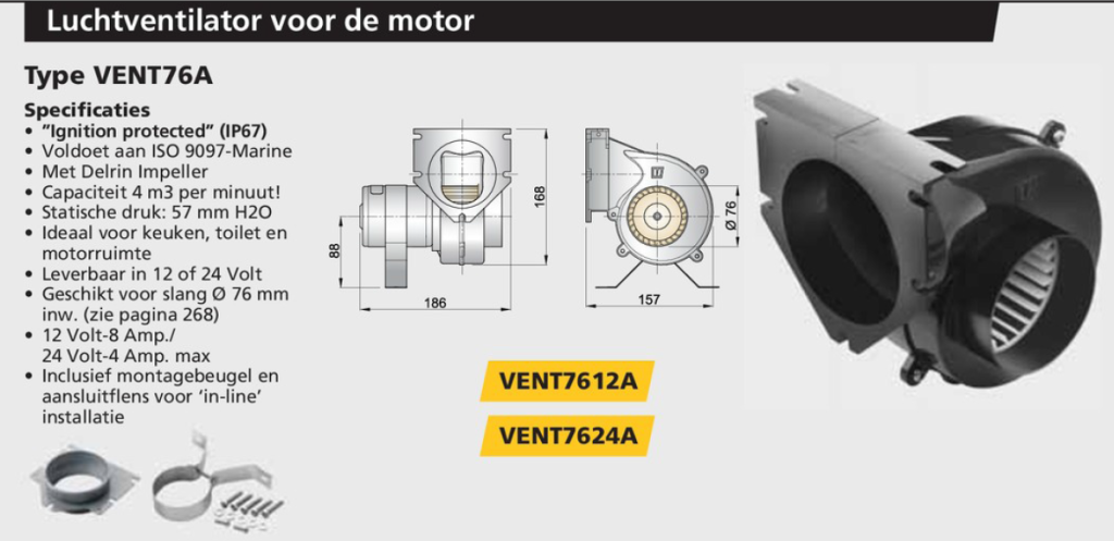 Vetus Vent76 Afzuigventilatoren 12 of 24 volt