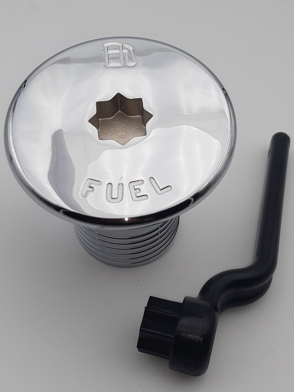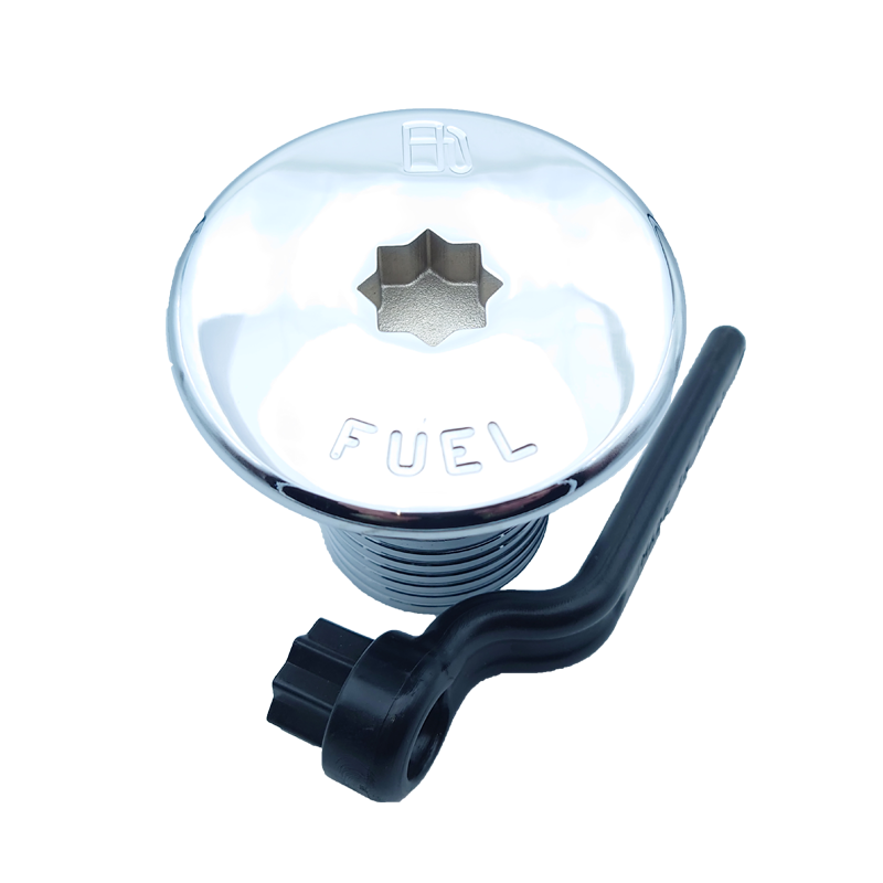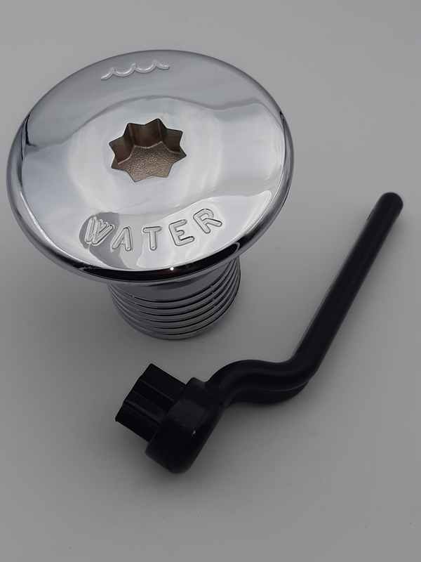 Verchroomde Dekvuldoppen met slot voor tanks in meerdere maten inclusief sleutel. Leverbaar als brandstof dekvuldop, water dekvuldop en vuilwaterdekdop. Bij deze dekvuldoppen word een sleutel bijgeleverd. Deze sleutel is ook los te bestellen en kan gebruikt worden als reserve sleutel en of vervanging sleutel voor bestaande dekvuldoppen.