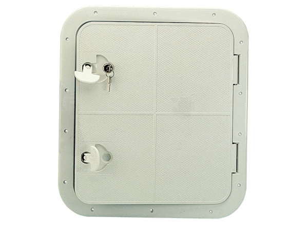 Leverbaar in wit kunststof, met of zonder slot, horizontaal of verticaal in te bouwen.