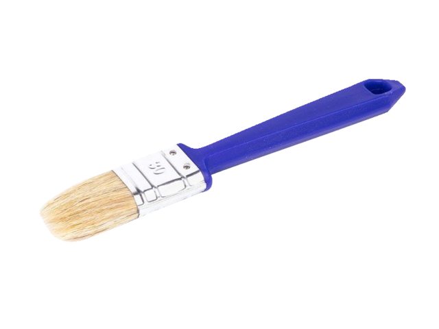 De kwast heeft een blauwe kunststof steel verzinkte bus met wit zuiver haar en is geschikt voor vele verf en lijm klussen.