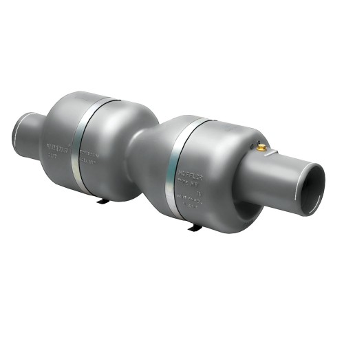 Kunststof demper met terugslagklep voor snelle schepen, voorzien van motoren met grote vermogens. Hoge demping van het uitlaatgeluid. Speciaal ontwikkeld voor snelle schepen voorzien van motoren met grote vermogens, waar veelal geen plaats is voor een waterlock en/of een zwanenhals.