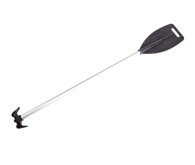 Talamex steekpeddel, een Peddel met bootshaak, zilver geanodiseerde steel en zwart blad voorzien van handgreep.