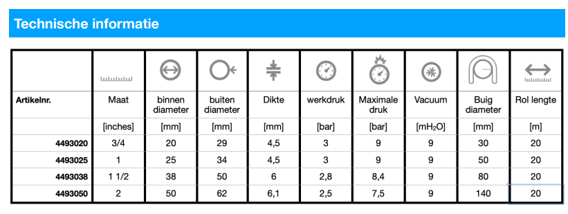 Een kwalitatief hoogwaardige slang met 10 jaar garantie op de kwaliteit en productie. Groot voordeel bij deze slang is de kunststof spiraal die gemakkelijk te snijden/knippen is en geen schade bij de verwerker kan veroorzaken. Slang is zeer buigzaam en komt in de oorspronkelijke vorm terug.