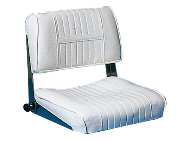 Stoelkuip met inklapbare rugleuning. De stoel is gemaakt van RVS en wit kunstleer, de rugleuning is inklapbaar. Een perfecte stoel voor montage in bijvoorbeeld een speedboot, zeilboot of een open kuip.