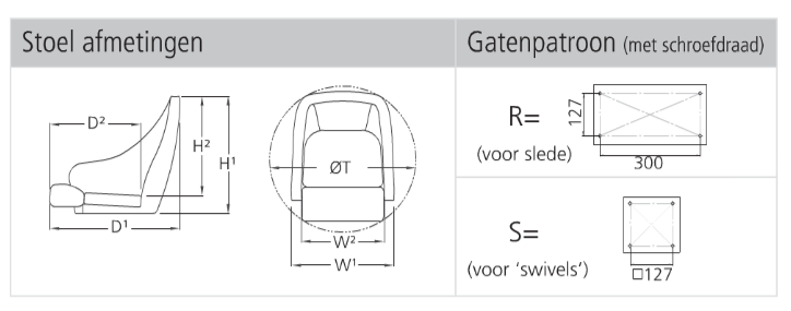 Deze Vetus stuurstoel wordt exclusief stoelpoot geleverd.