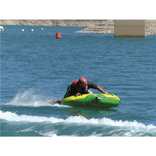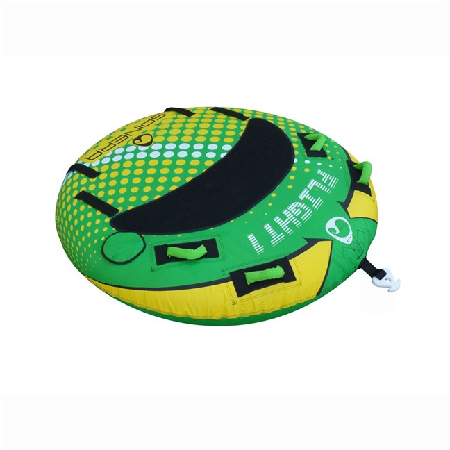 Funtube Spinera Flight 1 persoons Tube 152 cm. Spinera Flight 1 is een hoogwaardig opblaasbare donut voor 1 persoon voor fantastisch waterplezier. De donut beschikt over comfortabel handgrepen en een brede antislip gedeelte voor meer comfort en veiligheid. Kenmerken : PVC-dikte: 0.65 mm Polyester wanddikte : 420D Boston-ventiel voor het opblazen en ontluchten Aantal handgrepen : 4 Snelsluiting voor de touw Formaat : 152cm