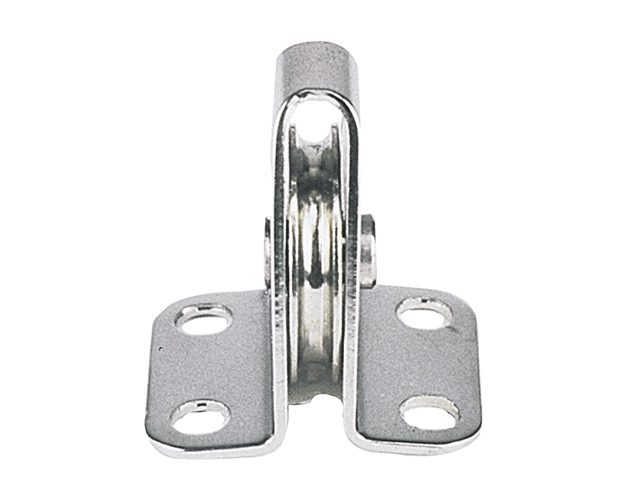 RVS blok voor lijnen Hoog model Ø 22 mm. • Hoog model, RVS. AISI 316, • Geschikt voor 3 mm staaldraad of lijn, • Schijf Nylatron, Ø: 22 mm, • SWL 160 daN. Breekkracht 350 daN.